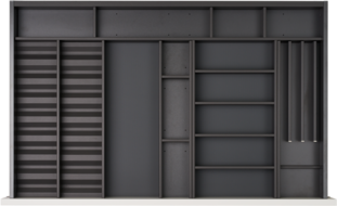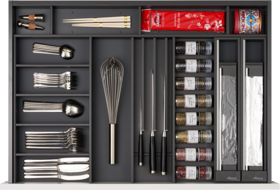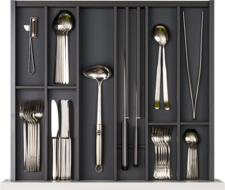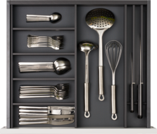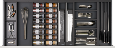 Die innovative Einteilungslösung von Elbau bringt Ordnung in Ihre Küchenschubladen. Dank modularem Aufbau, vielfältiger Nutzung, funktionalem Design und cleveren Details bieten sich unzählige Möglichkeiten das Innenleben der Schubladen zu gestalten.