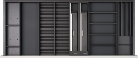 Dank einfacher Steckverbindung und modularem Aufbau ermöglicht die Einteilungslösung von Elbau grösstmögliche Freiheit beim Einrichten der Schubladen.